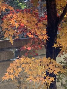 今年のモミジは少し赤みが足らないようです。昨年が塩害で一部枯れてしまったせいかもしれません。今日の状況です。散り始めるようです。今日の画像です。