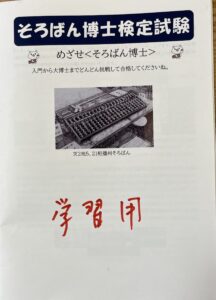 白井そろばん博物館では5月より「そろばん博士検定試験」をスタ-トいたしました。10段階の問題からなり、受験者の皆さん、真剣に楽しそうに問題に取り組んでいました。博物館に入館時に申し込みすぐに受験することができます。対策用のテキストも作成してありますので皆さん初めてでも合格されていました。現在6月の試験がスタ-トしています。ご入館の際は是非挑戦してください。のこり10冊ですが合格証書用の可愛いオリジナルポケットファイルプレゼント中です。