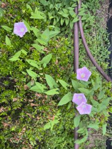 最近目立ってきたのがヒルガオです。団地の脇に結構頑張って咲いています。この時期はアガパンサスほど目立ちませんが存在感は示していますね。特に雨の日は・・・アジサイも小さいですが博物館裏で頑張っています。