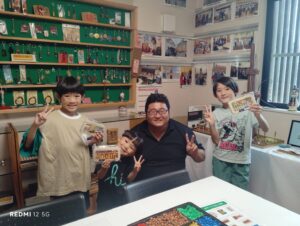 今日は少し涼しく感じた一日でしたね。播州そろばんの製造元の宮永会長さんやそろばんの先生方、卒業生の崎間さん、また「はしソロピック大会」参加のご家族、手作りそろばんやそろばんゲ-ムで楽しむ方々とお出でいただきました。