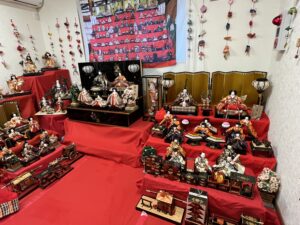 <しろいのひな祭り>明日2月1日(火)スタートします。写真は和室と博物館入り口のお雛様とつるし雛です。今日は前日ということでプレオープンで入館者とご近所の方30名を超える皆様に見ていただきました。